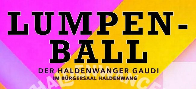 Der Lumpenball in Haldenwang: Ein letztes Mal in dieser Saison zeigt die Haldenwanger Gaudi ihr komplettes Programm – ein Muss als Faschingsball im Landkreis Günzburg. Als Gäste erwarten wir: FG Offonia Burgavia CC Harthausen Hollaria Augsburg Anschließend wieder Party und Tanz mit DJ Monaco. Lumpenball der Haldenwanger Gaudi: Ein Abend voller Spaß und Tanz…